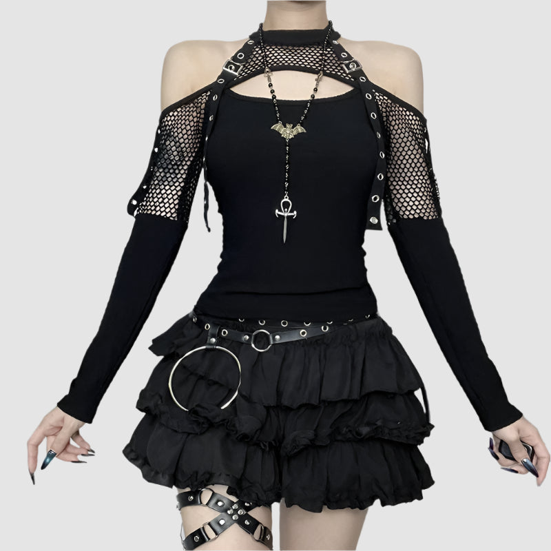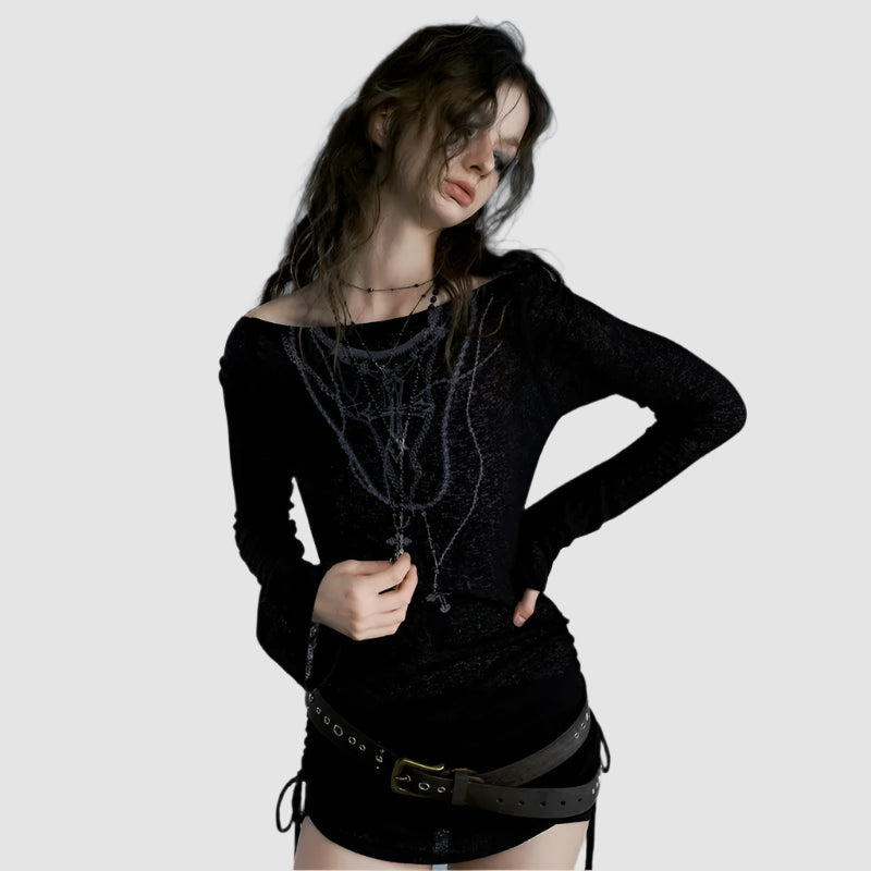 Les chemisiers gothiques avec dentelle sont la combinaison parfaite entre style sombre et élégance subtile. La dentelle, détail décoratif, apporte une touche de romantisme et de finesse aux chemises gothiques, créant un contraste avec les motifs bruts et gothiques. Les empiècements en dentelle, que ce soit sur les manches, sur les décolletés ou le long des coutures latérales, ajoutent de la délicatesse au vêtement, tout en soulignant son caractère sombre. Ces types de T-shirts sont un excellent choix aussi bien pour les sorties en soirée que pour les styles de tous les jours qui nécessitent un peu d'élégance. Associée à des éléments gothiques comme le velours ou des couleurs sombres, la dentelle ajoute un charme raffiné qui rend chaque style unique et chic.