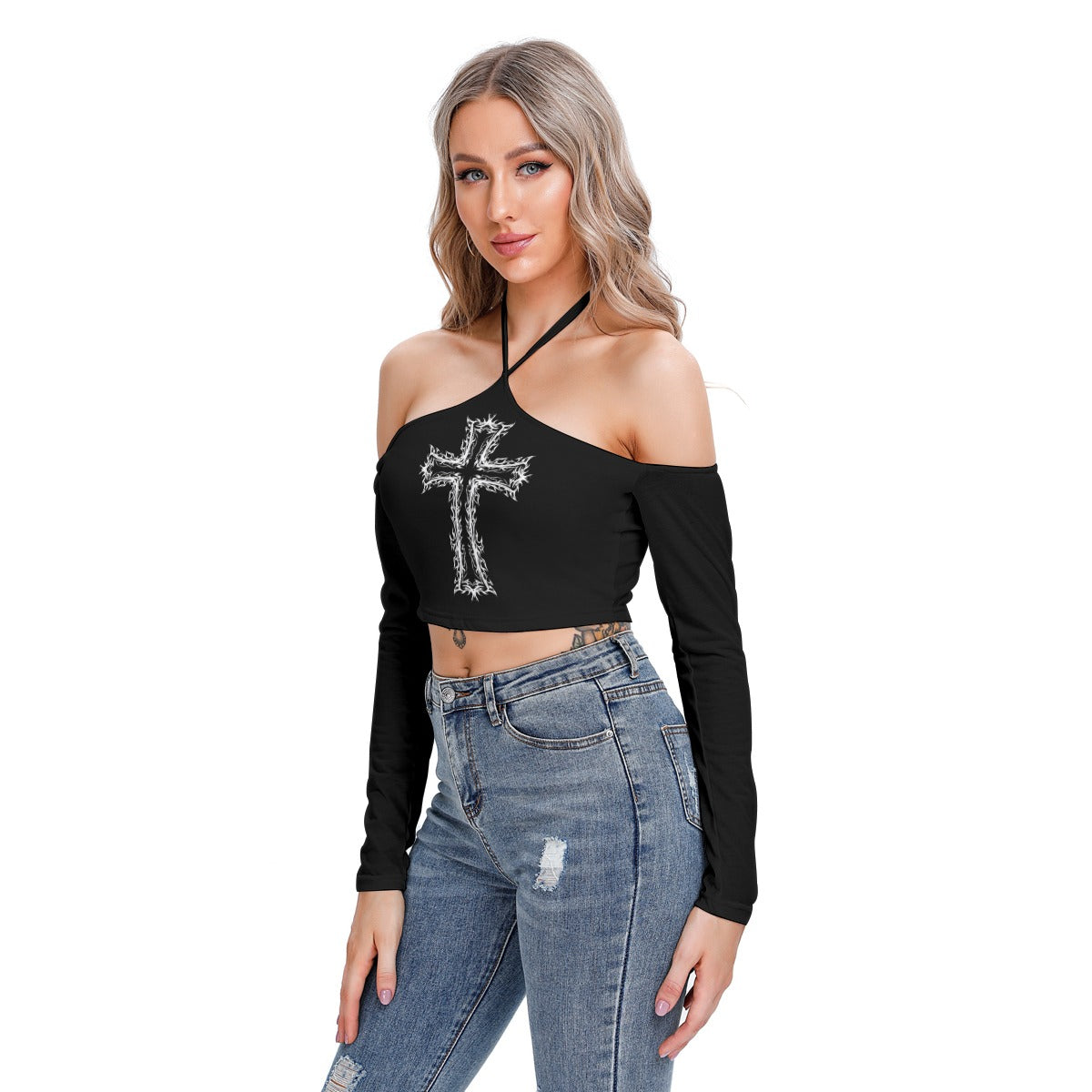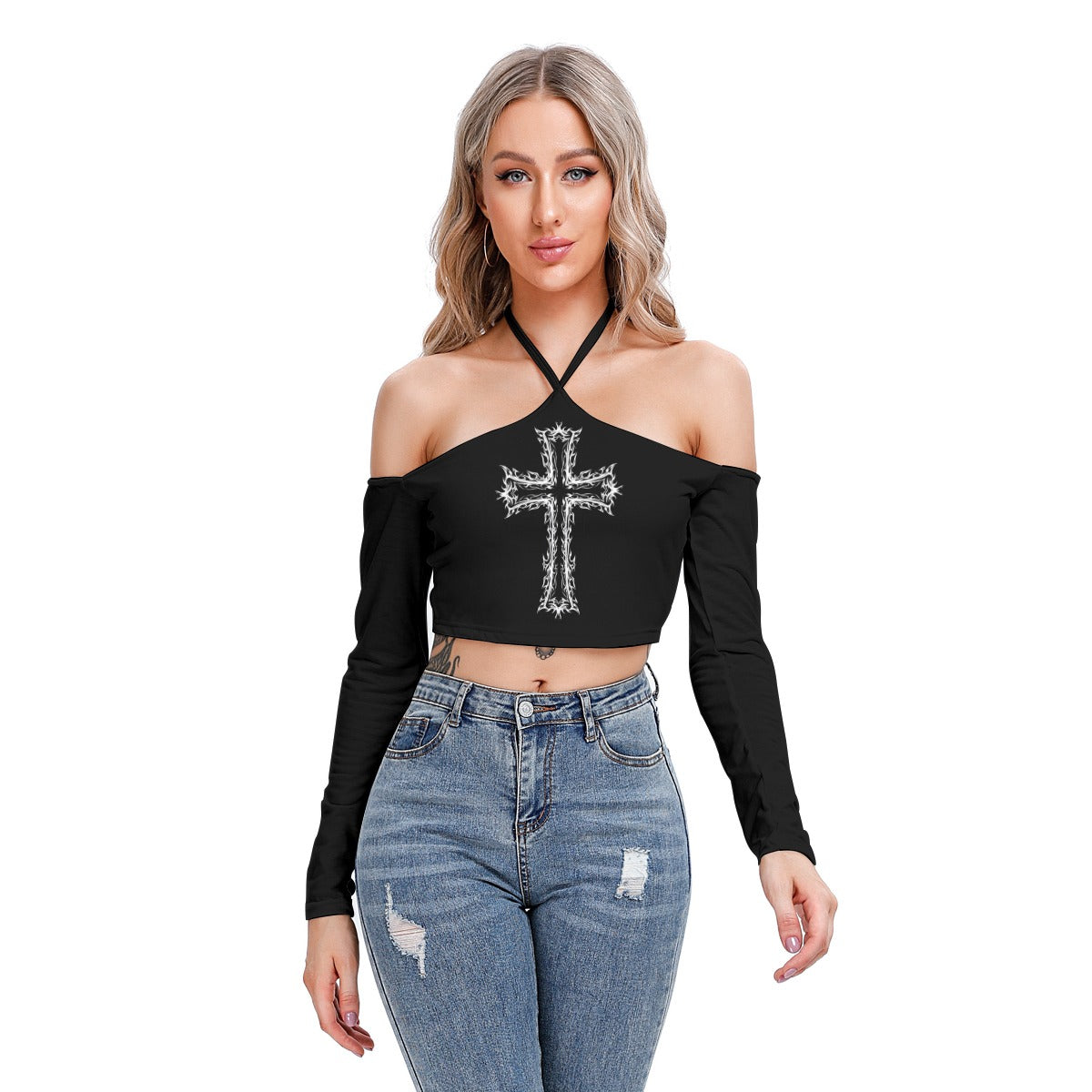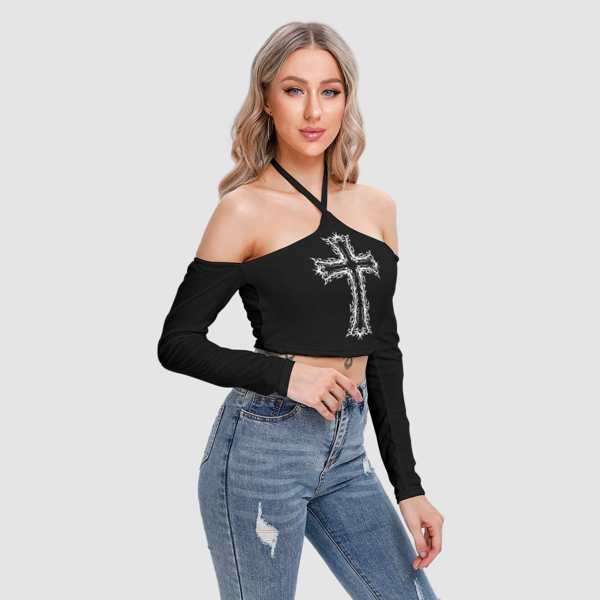 - Manches longues, attache au cou, épaules dénudées, partie avant doublée