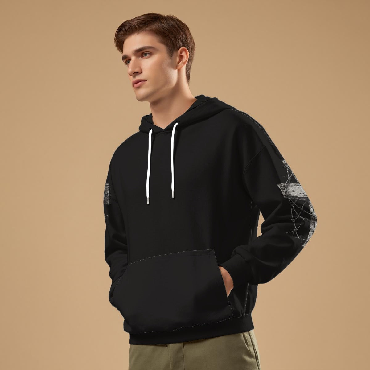 - Manches longues, motif boucle à l'intérieur, avec cordon, poche kangourou